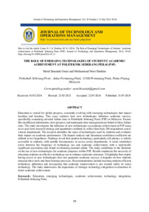 Omar, Nurul Ihsaniah and Ibrahim, Mohammad Noor (2024) The Role of Emerging Technologies of Students' Academic Achievement at Politeknik Seberang Perai (PSP). Journal of Technology and Operations Management, 19 (1). pp. 59-68. ISSN 2590-4175