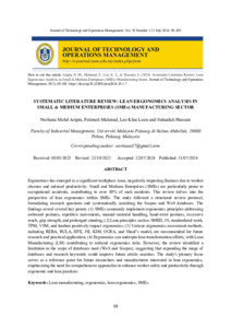 Mohd Aripin, Norhana and Mahmud, Fatimah and Loon, Lee Khai and Hussain, Suhaidah (2024) Systematic Literature Review: Lean Ergonomics Analysis in Small & Medium Enterprises (SMEs) Manufacturing Sector. Journal of Technology and Operations Management (JTOM), 19 (1). pp. 89-108. ISSN 2590-4175