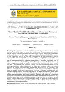 Mustafar, Mastora and Mat Yamin, Fadhilah and Mohamed Ismail, Risyawati and Mohd Nawi, Nur Syazwani and Abu Bakar, Siti Zakiah and Johari, Ayub (2024) Attitudinal Factors of Fishermen Trapped in the B40 Category: an Empirical Study. Journal of Technology and Operations Management (JTOM), 19 (2). pp. 86-93. ISSN 2590-4175