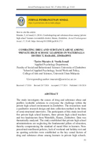 Maraire, Tariro and Ismail, Suzilah (2024) Combating Drug and Substance Abuse among ‘Private High School’ Learners in Waterfalls District, Harare, Zimbabwe. Jurnal Pembangunan Sosial (JPS), 27. pp. 51-68. ISSN 1394-6528