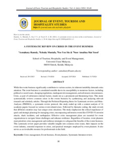 Ramely, Asmahany and Mustafa, Eshaby and Foo, Yen Sin and Mat Yusof, Noor Amalina (2024) A Systematic Review on Crises in the Event Business. Journal of Event, Tourism and Hospitality Studies (JETH), 4. pp. 30-46. ISSN eISSN 2805-4423