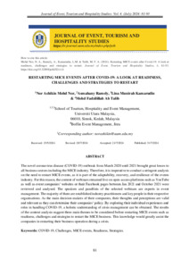| Uncontrolled Keywords: | COVID-19, Challenges, MICE events, Readiness, Strategies |