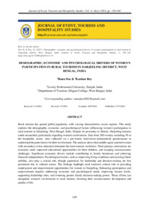 Das, Runa and Roy, Kankan (2024) Demographic, Economic and Psychological Drivers of Women's Participation in Rural Tourism in Darjeeling District, West Bengal, India. Journal of Event, Tourism and Hospitality Studies (JETH), 4. pp. 150-164. ISSN eISSN 2805-4423