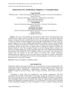 Shwedeh, Fanar and Hami, Norsiah and Abu Bakar, Siti Zakiah (2021) Dubai Smart City And Residence Happiness: A Conceptual Study. Annals of the Romanian Society for Cell Biology, 25 (1). pp. 7214-7222. ISSN 15836258