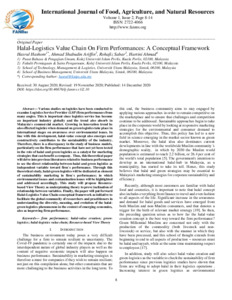 Hashom, Hasrul and Ariffin, Ahmad Shabudin and Sabar, Rohafiz and Ahmad, Hartini Halal-Logistics Value Chain On Firm Performances: A Conceptual Framework. International Journal of Food, Agriculture, and Natural Resources, 1 (2). pp. 8-14. ISSN 2722-4066