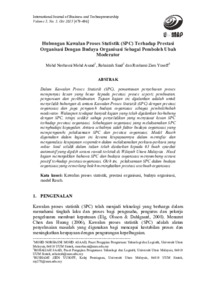 Dalam Kawalan Proses Statistik (SPC), pemantauan penyebaran proses mempunyai kesan yang besar kepada prestasi proses seperti pembuatan, pengurusan dan perkhidmatan. Tujuan kajian ini dijalankan adalah untuk menyelidik hubungan di antara Kawalan Proses Statistik (SPC) dengan prestasi organisasi dan juga pengaruh budaya organisasi sebagai pemboleh ubah moderator. Walaupun terdapat banyak kajian yang telah dijalankan berhubung dengan SPC tetapi sedikit sahaja penyelidikan yang menyiasat kesan SPC terhadap prestasi organisasi. Sebahagian organisasi yang melaksanakan SPC menghadapi kegagalan. Antara sebabnya ialah faktor budaya organisasi yang mempengaruhi pelaksanaan SPC dan prestasi organisasi. Model Rasch digunakan dalam kajian ini kerana keupayaannya dalam mentafsir dan menganalisis keupayaan responden dalam melaksanakan perkara-perkara yang sukar. Soal selidik dalam talian telah diedarkan kepada 63 buah syarikat automotif yang dipilih secara rawak terletak di Wilayah Utara Malaysia . Hasil kajian menunjukkan bahawa SPC dan budaya organisasi menyumbang secara positif terhadap prestasi organisasi. Oleh itu, pelaksanaan SPC dalam budaya organisasi yang cemerlang boleh meningkatkan prestasi sesebuah organisas