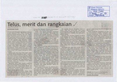 Shafie, Rohami (2010) Telus,Merit Dan Rangkaian. (10 May 2010). in Utusan Malaysia, Kuala Lumpur, p. p. 10. (In Press)
