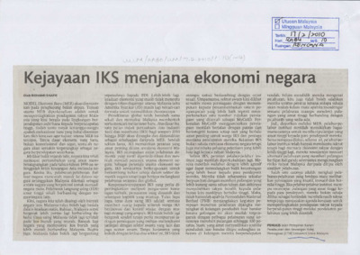 Shafie, Rohami (2010) Kejayaan IKS Menjana Ekonomi Negara. (17 February 2010). in Utusan Malaysia, Kuala Lumpur, p. p. 10. (In Press)