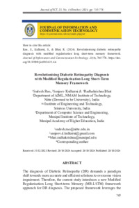 Rao, Sudesh and Kulkarni, Sanjeev and Bhat, Radhakrishna (2024) Revolutionising Diabetic Retinopathy Diagnosis with Modified Regularisation Long Short-Term Memory Framework. Journal of ICT, 23 (4). pp. 745-776. ISSN 1675-414X