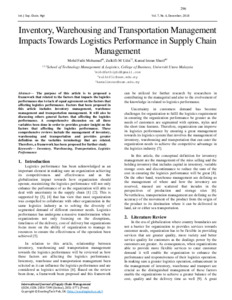 Mohamad, Mohd Saiful Adli and Mohamed Udin, Zulkifli and Mohd Sharif, Kamal Imran (2018) Inventory, Warehousing and Transportation Management Impacts Towards Logistics Performance in Supply Chain Management. International Journal of Supply Chain Management (IJSCM), 7 (6). pp. 7-6. ISSN 2050-7399