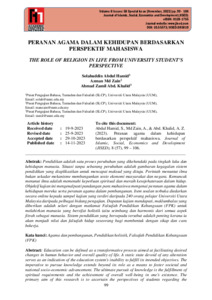 Pendidikan adalah satu proses perubahan yang dikehendaki pada tingkah laku dan kehidupan manusia. Situasi tanpa sebarang perubahan adalah gambaran kegagalan sistem pendidikan yang diaplikasikan untuk mencapai maksud yang dituju. Perintah menuntut ilmu bukan sekadar mekanisme membangunkan sosio ekonomi masyarakat dan negara. Kemuncak menunut ilmu adalah memenuhi keperluan spiritual dan meraih kesejehateraan dalam hidup. Objektif kajian ini mengenalpasti pandangan para mahasiswa mengenai peranan agama dalam kehidupan mereka serta peranan agama dalam pembangunan. Item soalan terbuka diedarkan secara online kepada sampel kajian yang terdiri daripada 240 orang pelajar Universiti Utara Malaysia daripada pelbagai bidang pengajian. Dapatan kajian mendapati, maklumbalas yang diberikan adalah selari dengan matlamat Falsafah Pendidikan Kebangsaan (FPK) untuk melahirkan manusia yang bersifat holistik iaitu seimbang dan harmonis dari semua aspek fitrah sebagai manusia. Sistem pendidikan yang bersepadu tersebut adalah penting kerana ia akan menjadi nilai dan falsafah hidup seseorang bagi membentuk dengan sikap dan cara bekerja