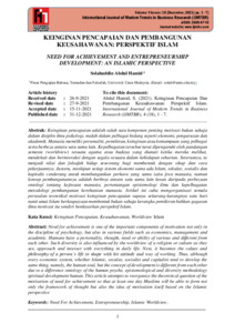 | Uncontrolled Keywords: | Keinginan Pencapaian, Keusahawanan, Worldview Islam |