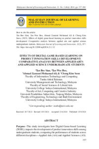 Tan, Bee Sian and Tan, Wee Hoe and Mohamad Ali, Ahmad Zamzuri and Chong, Kim Soon (2024) Effects of Digital Game-Based Learning on Product Innovation Skills Development: Comparative Analysis Between Applied Arts and Applied Science Undergraduate Students. Malaysian Journal of Learning and Instruction (MJLI), 21 (2). pp. 357-386. ISSN 1675-8110