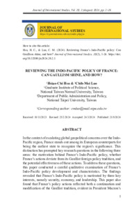 In the context of escalating global geopolitical concerns over the Indo Pacific region, France stands out among its European counterparts for being the earliest state to recognize the region’s significance. This distinction has prompted key research questions in the following three areas: the motivation behind France’s Indo-Pacific policy, whether France’s actions deviate from its Gaullist foreign policy tradition, and the potential effectiveness of these actions. To address these questions, this paper conducted a careful qualitative examination of France’s Indo-Pacific policy development and characteristics. The findings revealed that France’s Indo-Pacific policy is motivated by three key interests, namely security, economy, and leadership. This paper also found that France’s policy actions reflected both a continuation and modification of the Gaullist tradition, evident in President Macron’s mix of cooperation and skepticism toward the United States (US) and North Atlantic Treaty Organization. Concerning policy effectiveness, France’s status as a regional and middle power implies significant constraints in its physical capabilities, which hinder its ability to alleviate tension arising from the US–China competition, the dominant forces shaping the regional political-economic dynamics. Nevertheless, France’s expanding presence and enhanced soft power influence in the Indo-Pacific region have the potential to yield increased bargaining leverage in its interaction with the US and China