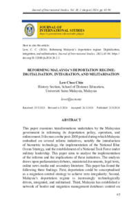Low, Choo Chin (2024) Reforming Malaysia’s Deportation Regime: Digitalisation, Integration, and Militarisation. Journal of International Studies (JIS), 20 (2). pp. 65-94. ISSN 1823-691X