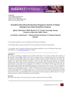 | Uncontrolled Keywords: | Skills; Qiraat Knowledge; 21st Century Teaching; Teachers of Quranic Skills Classes (KKQ) |