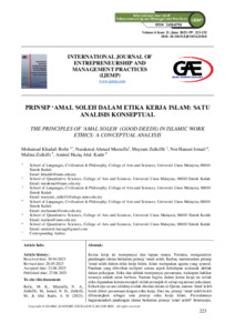 Rofie, Mohamad Khadafi and Ahmad Mustaffa, Nurakmal and Ismail, Nor Hanani and Zulkifli, Malina (2023) Prinsip ‘Amal Soleh dalam Etika Kerja Islam: Satu Analisis Konseptual. International Journal of Entrepreneurship and Management Practices, 6 (21). pp. 223-232. ISSN 2600-8750