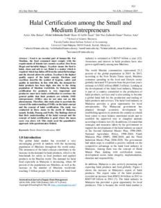 Abu Bakar, Azizi and Shuib, Mohd Sollehudin and Saad, Ram Al Jaffri and Omar, Siti Nur Zahirah and Aziz, Noriza (2019) Halal Certification among the Small and Medium Entrepreneurs. International Journal of Supply Chain Management (IJSCM), 8 (1). pp. 717-723. ISSN 2051-3771