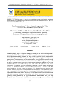 Kurniasari, Dian and Muhammad, Dwi Pratama and Junaidi, Akmal Junaidi and Faisol, Ahmad (2024) Transforming Alzheimer’s Disease Diagnosis: Implementing Vision Transformer (ViT) for MRI Images Classification. Journal of Information and Communication Technology (JICT), 24 (1). pp. 130-152. ISSN 1675-414X