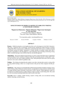 | Uncontrolled Keywords: | Form 4 students, mobile learning, narrative writing skills, non-conventional teaching method, technology assisted learning |