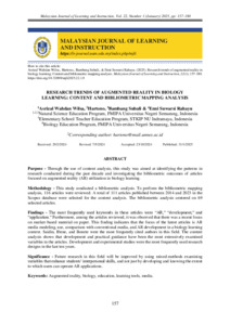 Hartono, Hartono and Wilsa, Asrizal Wahdan and Subali, Bambang and Rahayu, Enni Suwarsi (2025) Research Trends of Augmented Reality in Biology Learning: Content and Bibliometric Mapping Analysis. Malaysian Journal of Learning and Instruction (MJLI), 22 (1). pp. 157-180. ISSN 1675-8110