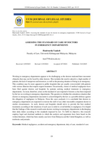 Yaakob, Haniwarda (2025) Assessing the Standard of Care of Doctors in Emergency Departments. UUM Journal of Legal Studies (UUMJLS), 16 (1). pp. 19-33. ISSN 2229-984X