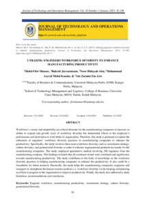 Mansor, Mohd Fitri and Jeevaratnam, Rakesh and Abu, Noor Hidayah and Mohd Kassim, Mohammad Asyraf and Zin Aris, Ain Zuraini (2025) Utilizing Engineers Workforce Diversity to Enhance Manufacturing Productivity. Journal of Technology and Operations Management (JTOM), 20 (1). pp. 91-106. ISSN 2590-4175 (Online)