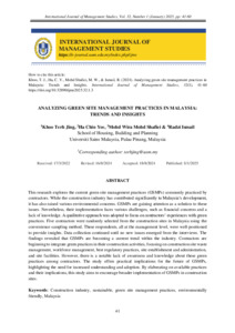 Khoo, Terh Jing and Ha, Chin Yee and Mohd Shafiei, Mohd Wira and Ismail, Radzi (2025) Analyzing Green Site Management Practices in Malaysia: Trends and Insights. International Journal of Management Studies (IJMS), 32 (1). pp. 41-60. ISSN 2180-2467