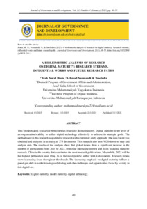Muhammad, Nurul Huda and Nurmandi, Achmad and Saefudin, Saefudin (2025) A Bibliometric Analysis of Research on Digital Maturity: Research Streams, Influential Works and Future Research Paths. Journal of Governance and Development (JGD), 21 (1). pp. 40-53. ISSN 2289-4756