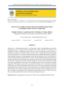Salawu, Ibrahim O and Kolawole, Ayodele and Alfakoro, Abubakar S. Yushau (2025) Non-State Actors and Election Management Practices in Nigeria: Issues and Way Forward. Journal of Governance and Development (JGD), 21 (1). pp. 81-94. ISSN 2289-4756