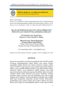 | Uncontrolled Keywords: | ChatGPT, bahasa Melayu, bahasa Indonesia, bahasa dan teknologi, pemprosesan bahasa tabii |