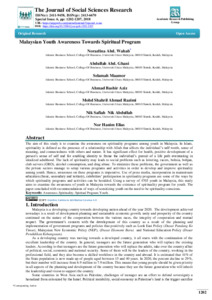 Abd. Wahab, Norazlina and Abd. Ghani, Abdullah and Maamor, Selamah and Aziz, Ahmad Bashir and Ahmad Razimi, Mohd Shahril and Nik Abdullah, Nik Safiah and Elias, Nor Hanim (2018) Malaysian Youth Awareness Towards Spiritual Program. Journal of Social Science Research, 6 (6). pp. 1202-1027. ISSN 2321-1091