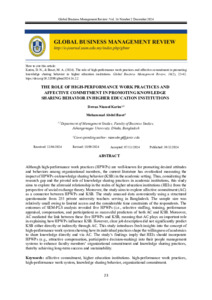 Karim, Dewan Niamul and Baset, Muhammad Abdul (2024) The Role of High-Performance Work Practices and Affective Commitment in Promoting Knowledge Sharing Behavior in Higher Education Institution. Global Business Management Review (GBMR), 16 (2). pp. 23-42. ISSN 2180-2416
