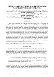 Md. Hussain, Muhammad Nasri and Abu Bakar, Nurul Azma and Abu Bakar, Azizi (2021) External Restructuring: Challenges to Waqf Institutions in Malaysia. Academy of Strategic Management Journal, 20 (6s). pp. 1-9. ISSN 1544-1458