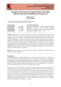 Roais, Rohaya and Abu Bakar, Azizi (2020) Interaction Quality Dimension Towards Service Quality Hospital Putrajaya. Journal of Islamic, Social, Economics and Development (JISED), 5 (34). pp. 75-82. ISSN eISSN: 0128-1755