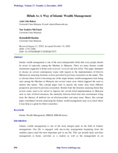 Abu Bakar, Azizi and Md Fauzi, Nur Syahira and Hashim, Hydzulkifli (2020) Hibah As A Way of Islamic Wealth Management. Webology, 17 (2). pp. 896-903. ISSN 1735-188X