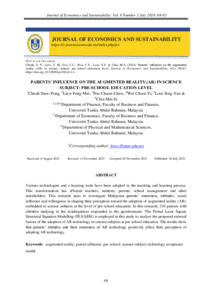 Cheah, Siew-Pong and Liew, Feng-Mei and Foo, Chuan-Chew and Wei, Chooi-Yi and Looi, Sing-Yan and Chia, Mei-Si (2024) Parents’ Influence on the Augmented Reality (AR) in Science Subject: Pre-School Education Level. Journal of Economics and Sustainability (JES), 6 (2). pp. 68-83. ISSN 2637-1294