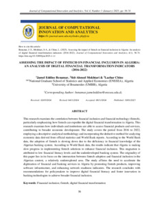 Benamar, Jamel Eddine and Mokhtari, Sid-Ahmed and Chine, Lazhar (2025) Assessing the Impact of Fintech on Financial Inclusion in Algeria: an Analysis of Digital Financial Transformation Indicators (2016-2022). Journal of Computational Innovation and Analytics (JCIA), 4 (1). pp. 56-74. ISSN 2821-3408