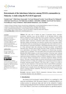 Ganti, Norhaifa and Kamarudin, Mohd Khairy and Mohamad Norzilan, Nur Izzati and Nor Muhamad, Nasrul Hisyam and Darawi, Abdul Basit Samat and Ab Rahim, Nik Mohd Zaim and Abdullah, Abdul Hafiz and Noor Zainan, Nurul Izzah and Awang-Ab Rahman, Nurul Hidayah and Muhammad, Mohd Zulkifli and Abu Bakar, Azizi (2024) Determinants of the inheritance behaviours among FELDA communities in Malaysia A study using PLS-SEM approach. Journal of Infrastructure, Policy and Development, 8 (6). pp. 1-21. ISSN 25727923