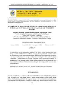 Shaydulla, Mengliev and Habibulla, Akhadkulov and Mohd Kamal, Afiqah (2025) Mathematical Modeling of Viscous Incompressible Fluid Flow in Tubular Networks: Analysis of Laminar and Turbulent Regimes. Journal of Computational Innovation and Analytics (JCIA), 4 (1). pp. 75-84. ISSN 2821-3408