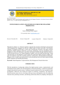 Mohamed, Hazik (2025) Fintech Regulation and Governance from the Singapore Perspective. International Journal of Islamic Business (IJIB), 10 (1). pp. 1-13. ISSN 0127-662X