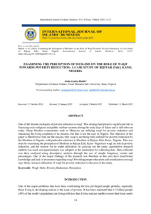 Habib, Aisha Garba (2025) Examining The Perception of Muslims on The Role of Waqf Towards Poverty Reduction: A Case Study of Rijiyar Zaki, Kano, Nigeria. International Journal of Islamic Business (IJIB), 10 (1). pp. 14-27. ISSN 0127-662X