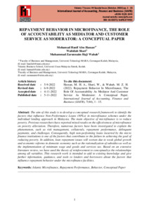 Abu Hassan, Mohamad Hanif and Shari, Wahidah and Wahab, Muhammad Zarunnaim Repayment Behavior in Microfinance, The Role of Accountability as Mediator and Customer Service as Moderator: A Conceptual Paper. International Journal of Accounting, Finance and Business (IJAFB), 7 (44). pp. 1-15. ISSN 0128-1844