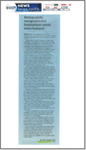 Ishak, Nor Asikhin (2025) Remaja Perlu Mengusai Seni Kepimpinan Untuk Masa Hadapan. (11 March 2025). in Utusan Malaysia, Kuala Lumpur, p. p. 25. (In Press)