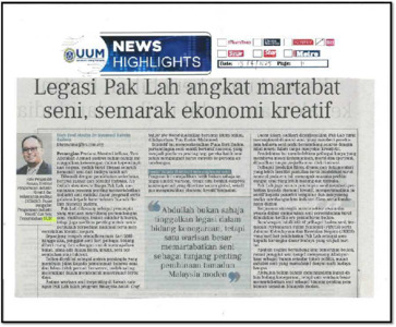 | Uncontrolled Keywords: | Rencana / Komentar / Legasi Pak Lah Angkat Martabat Seni, Semarak Ekonomi Kreatif penulisan Prof Madya Dr Syamsul Bahrin Zaibon, Felo Penyelidik Kanan, Institut Pengurusan Industri Kreatif dan Kelestarian Budaya (ICIMSC) dan pensyarah Pusat Pengajian Pengurusan Indusri dan Seni Kreatif, Universiti Utara Malaysia |
