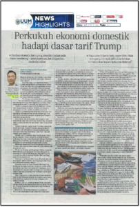 Zainal Abidin, Irwan Shah (2025) Perkukuh Ekonomi Domestik Hadapi Dasar Tarif Trump. (22 April 2025). in Berita Harian, Bangsar, Kuala Lumpur, p. p. 12. (In Press)
