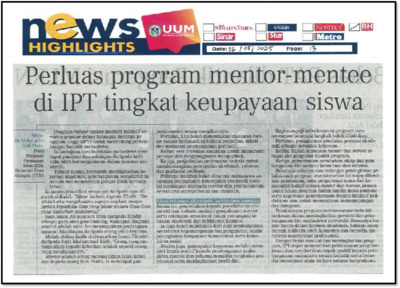 Abd Muin, Mohd Adib (2025) Perluas Program Mentor - Mentee Di IPT Tingkat Keupayaan Siswa. (6 May 2025). in Berita Harian, Bangsar, Kuala Lumpur, p. p. 13. (In Press)