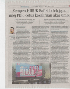 Omar, Rusdi (2025) Kempen HIRUK Rafizi Boleh Jejas Imej PKR, Cetus Kekeliruan Akar Umbi. (23 May 2025). in Berita Harian, Bangsar, Kuala Lumpur, p. p. 12. (In Press)