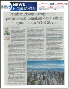 | Uncontrolled Keywords: | Rencana / Komentar / Pembangkang, Penganalisis Perlu Iktiraf Lonjakan Daya Saing Negara Dalam WCR 2025 penulisan Prof Dr Rusdi Omar pensyarah / Dekan di Ghazali Shafie Graduate School of Government (GSGSG) Universiti Utara Malaysia |
