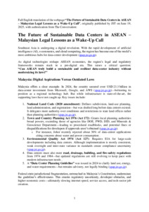 Md Dahlan, Nuarrual Hilal (2025) The Future Of Sustainable Data Centers In ASEAN - Malaysian Legal Lessons As A Wake-Up Call. (19 June 2025). in Science Portal Asean, Japan.